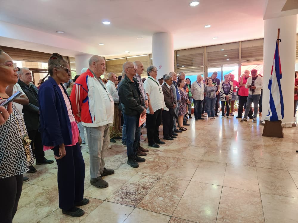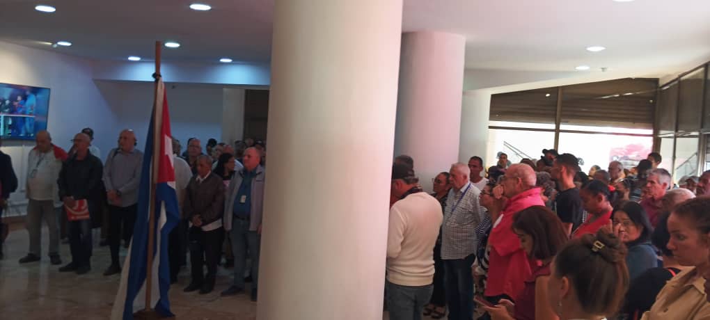 Con un minuto de silencio en homenaje a los 32 cubanos caídos en Venezuela el pasado 3 de enero, víctimas del ataque con bombas y misiles del gobierno de Estados Unidos en esa hermana nación, inició el mitin realizado en horas del mediodía de este lunes en el emblemático edificio de la Radio y la TV cubanas.
