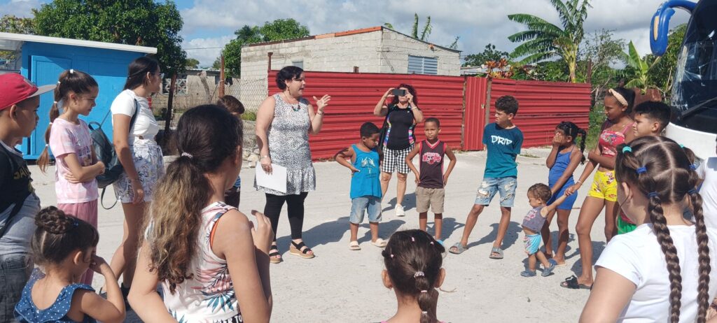 Los más pequeños de la comunidad Buenos Aires, del municipio capitalino del Cotorro, fueron partícipes en esta jornada de sábado de una actividad artístico cultural protagonizada por el Proyecto «La Casa de Mamá Tomasa» y la emisora Radio Taíno.