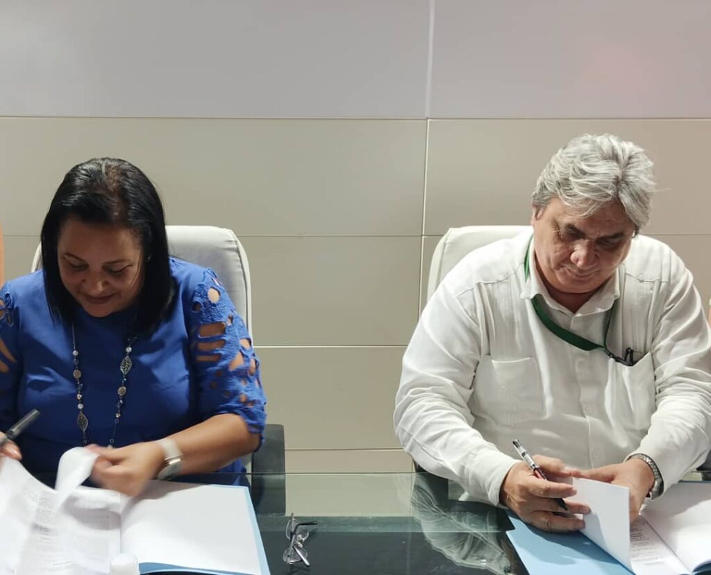 Un Convenio de colaboración que expresa la voluntad para el desarrollo de actividades de asesoramiento, docencia e investigación científica, en pos del empleo de las nuevas tecnologías, el uso de la IA y la gestión en comunicación social, fue firmado en la noche de este martes entre los titulares del Ministerio de Comunicaciones de Cuba (MINCOM) y el Instituto de Información y Comunicación Social (ICS), Mayra Arevich Marín y Alfonso Noya Martínez, respectivamente.