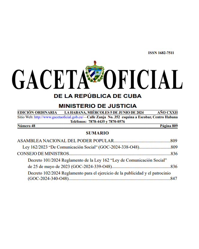 Tras 120 días desde su publicación en la Gaceta Oficial de la República de Cuba, la Ley 162/2023 de Comunicación…