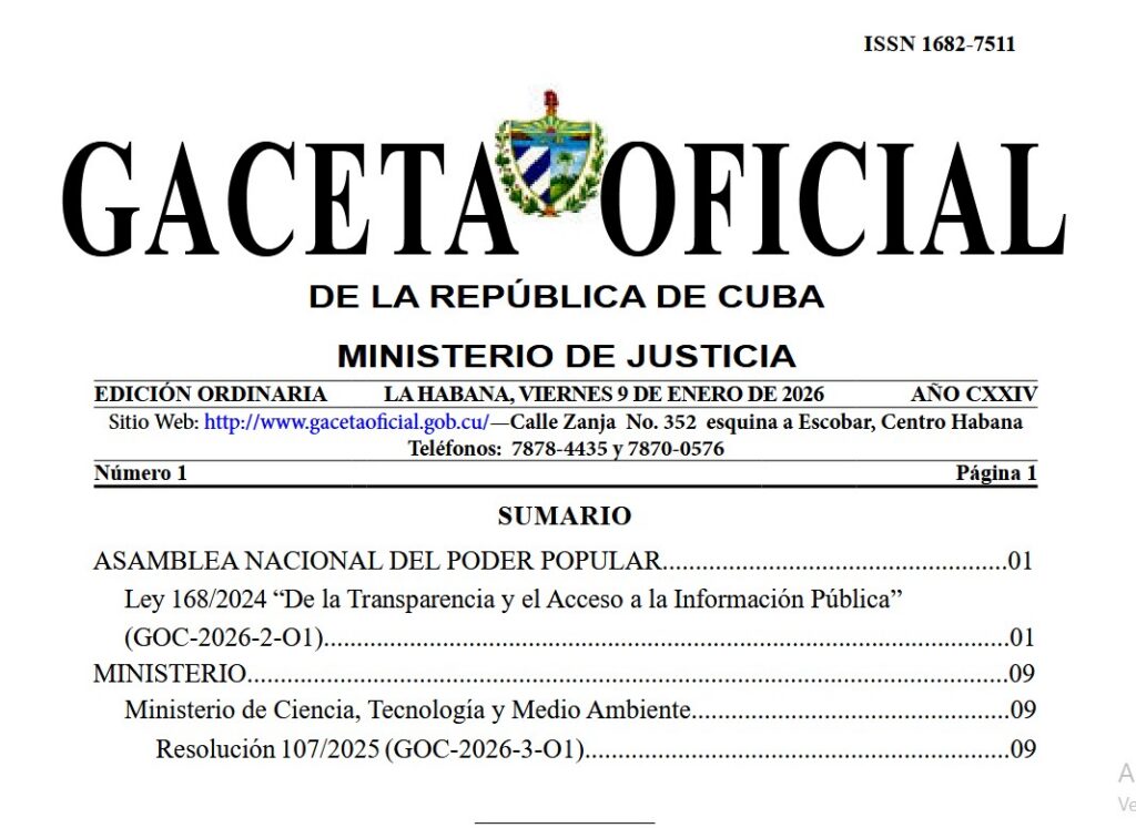 El pasado viernes fue publicada en la Gaceta Oficial de la República de Cuba, la Ley 168/2024 “De la Transparencia…