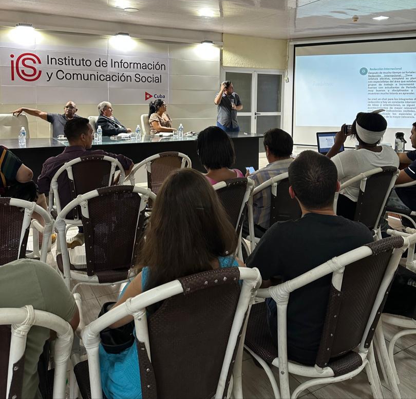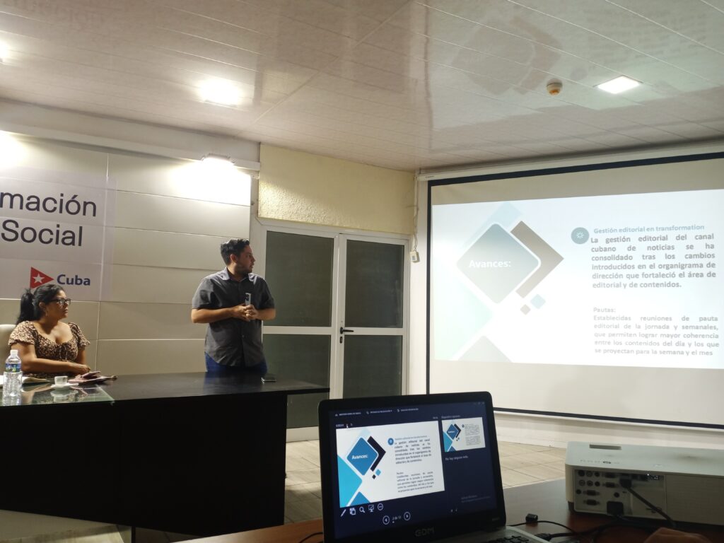 El periodista Lázaro Manuel Alonso, director de Política Editorial del canal, presentó los avances en el perfeccionamiento del trabajo editorial, chequeado con sistematicidad por la dirección del Instituto.