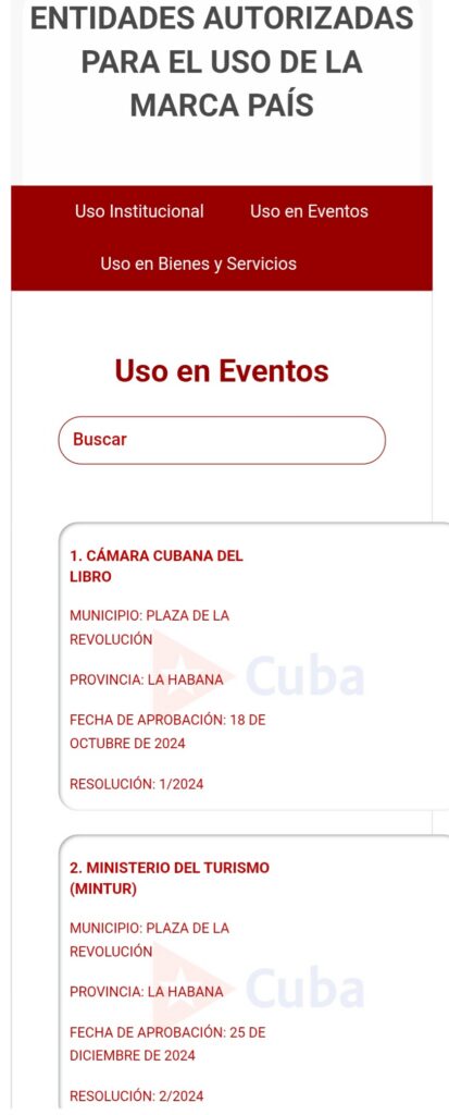 Hasta el primero de noviembre del presente año, el Consejo de la Marca País recibió más de 550 solicitudes de uso de la Marca Cuba y ha aprobado 442, desglosadas de la forma siguiente: 342 para uso organizacional, 90 para eventos, que abarcan a más de 300 de los más importantes eventos nacionales o internacionales, con presencia cubana, tanto en la Isla como en el extranjero y 15 para bienes y servicios.